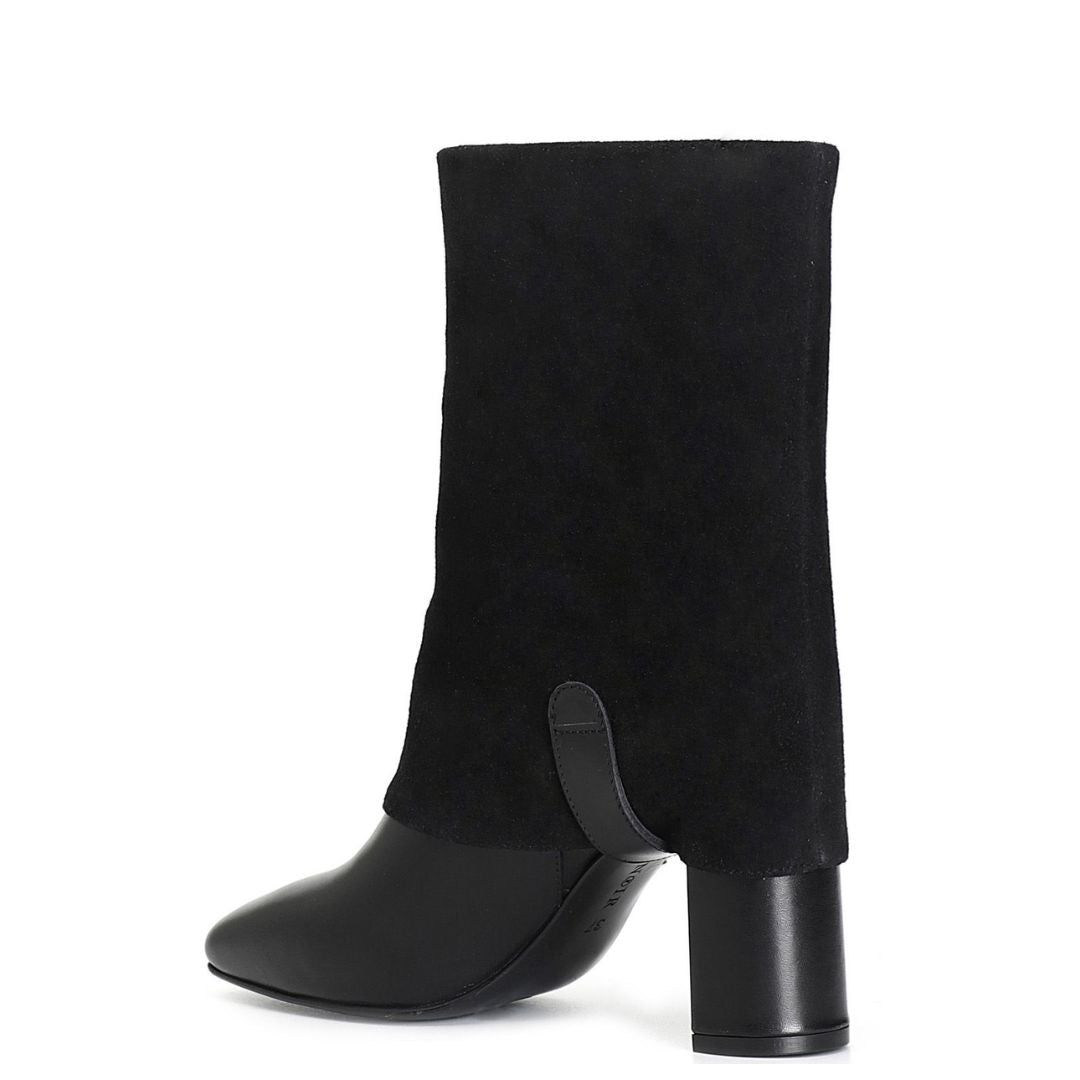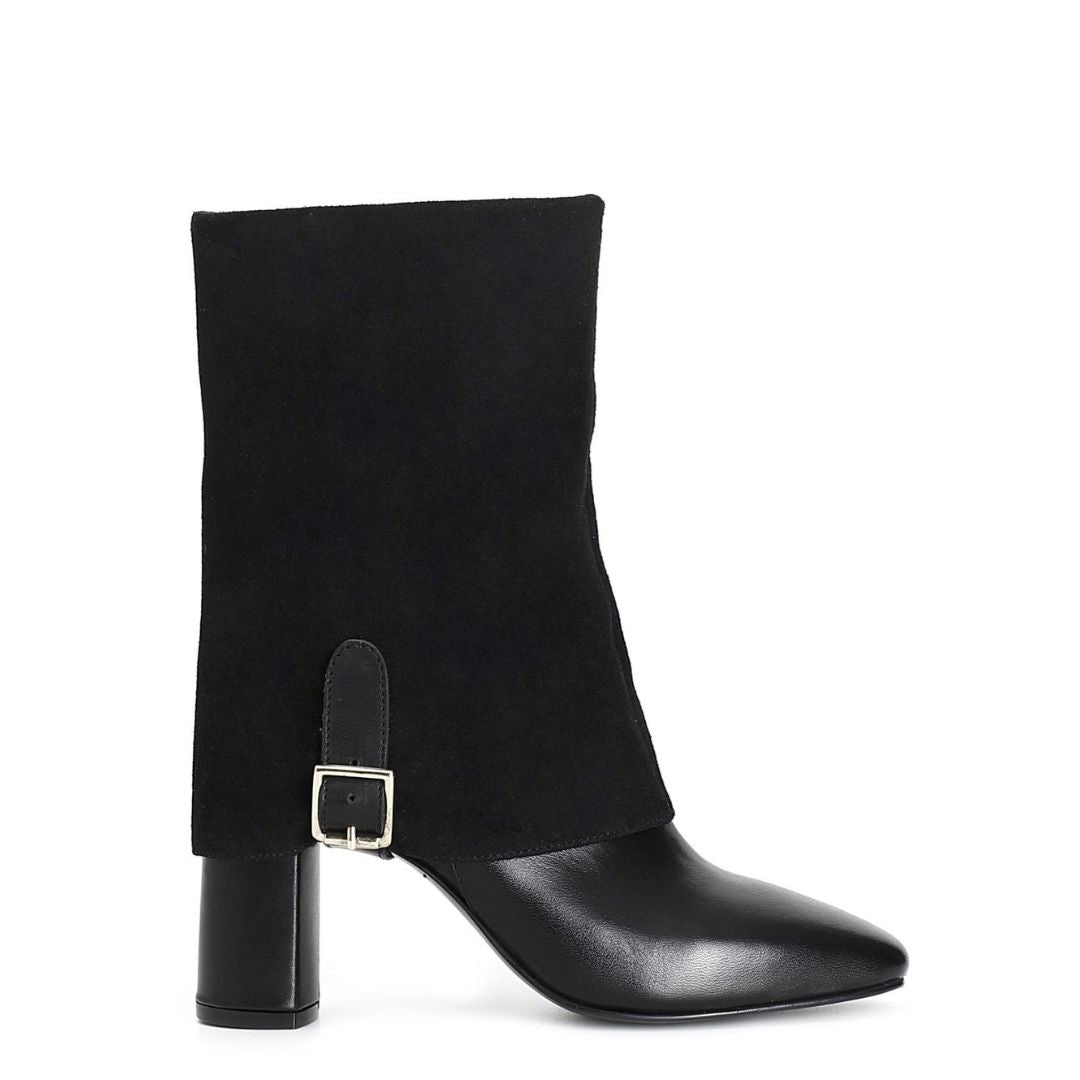 Tronchetto in nappa e camoscio con maxi risvolto e fibbia.