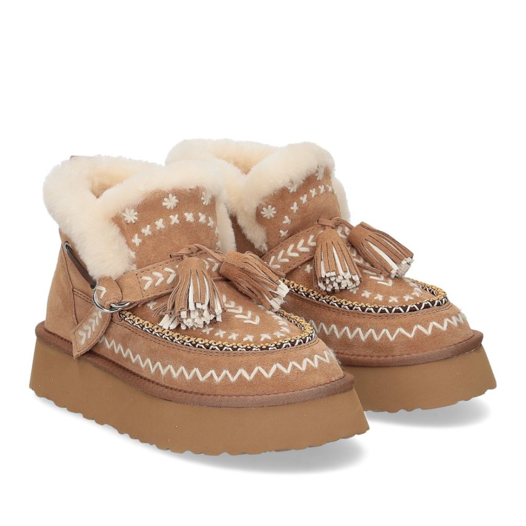 Stivaletto in camoscio con fodera in montone. Suola in gomma.