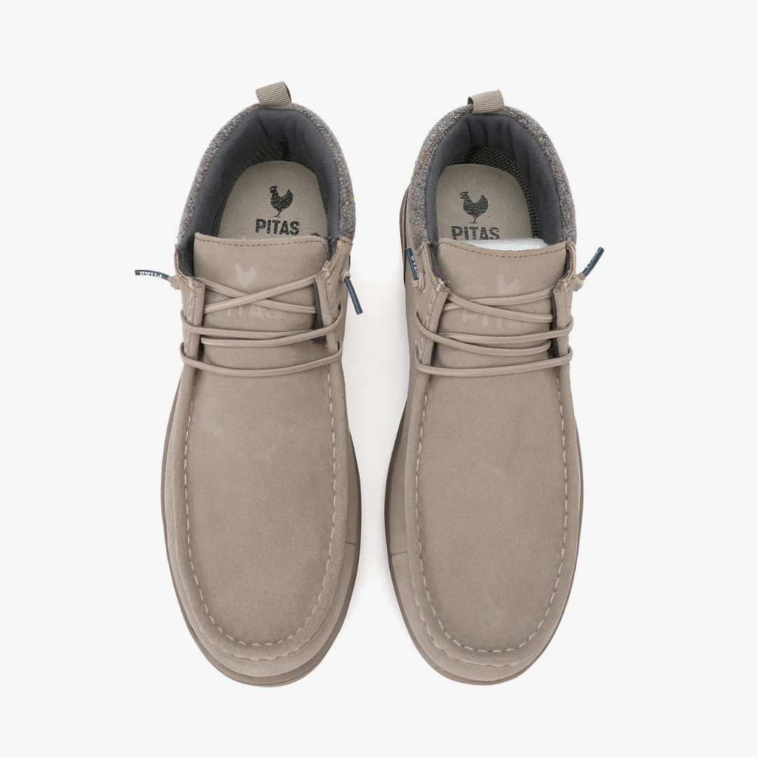 Tomaia in pelle scamosciata idrorepellente con tallone in pelle nabuk